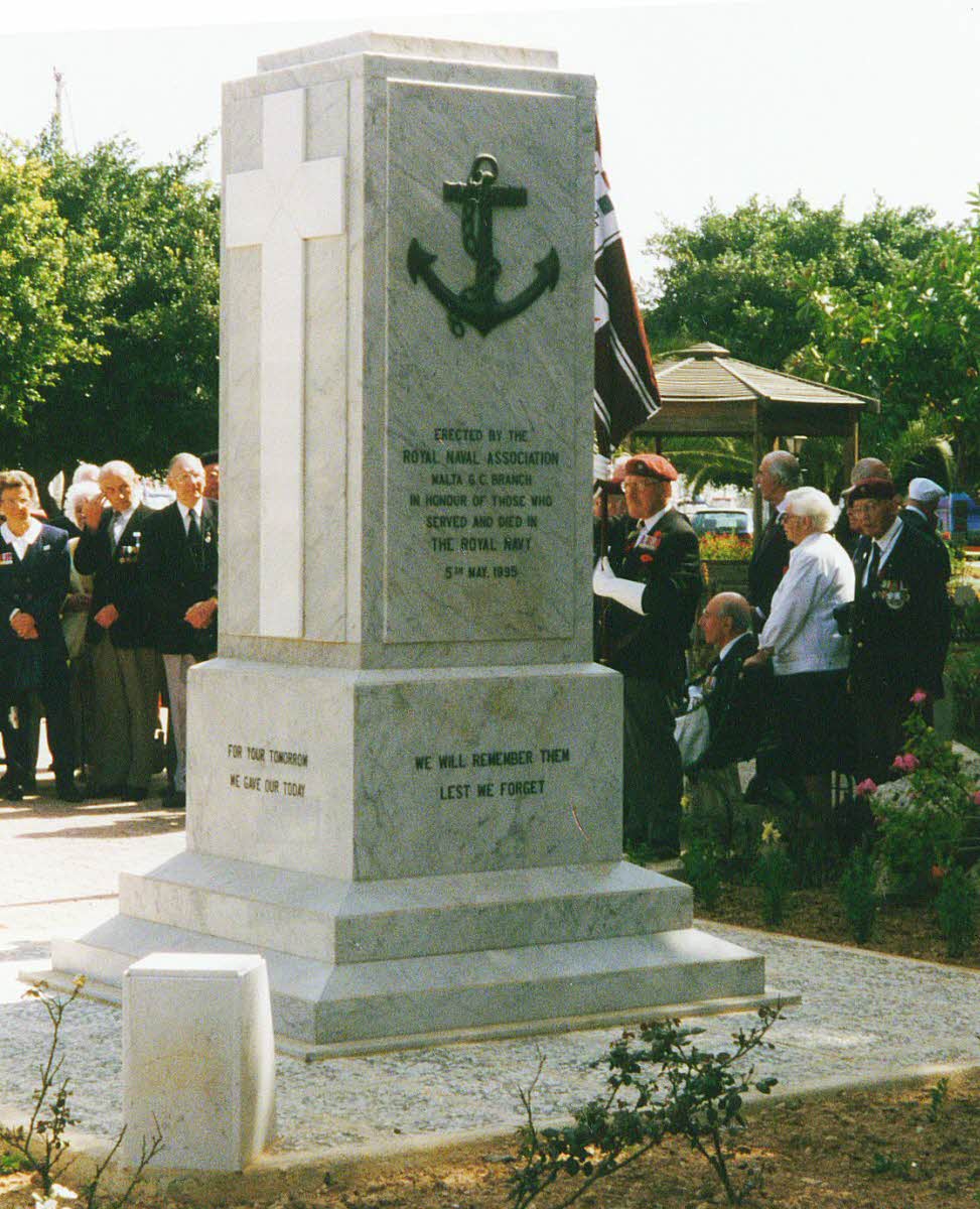 Memorial erected by the Royal Naval Association Malta GC Branch at Pieta, Malta GC. 2,336 Royal Marines died at sea 1914-1918. 2,135 Royal Marines died at sea 1939-1945. Inscription: We will remember them - Lest we forget