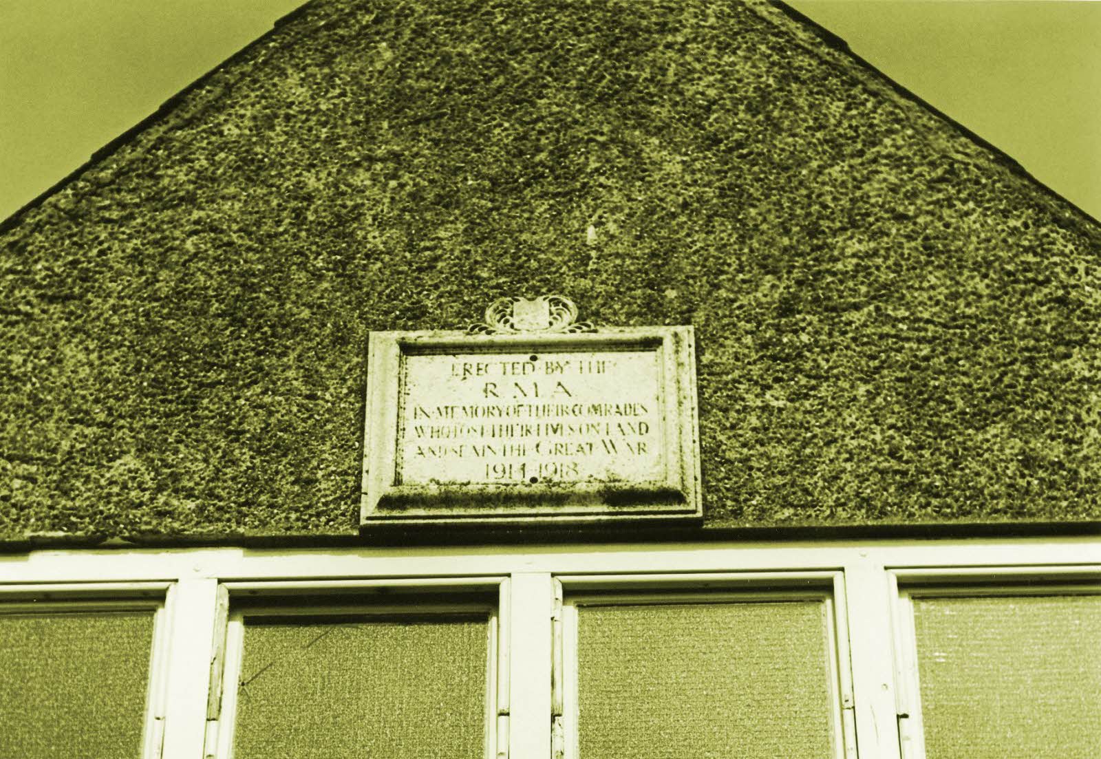 Sports Pavilion erected by the Royal Marine Artillery in memory of comrades lost on land and sea 1914-1918 War. Located at RM Museum Eastney and is now Royal Marines Association Clubhouse. Plaque is now in RM Association Clubhouse.