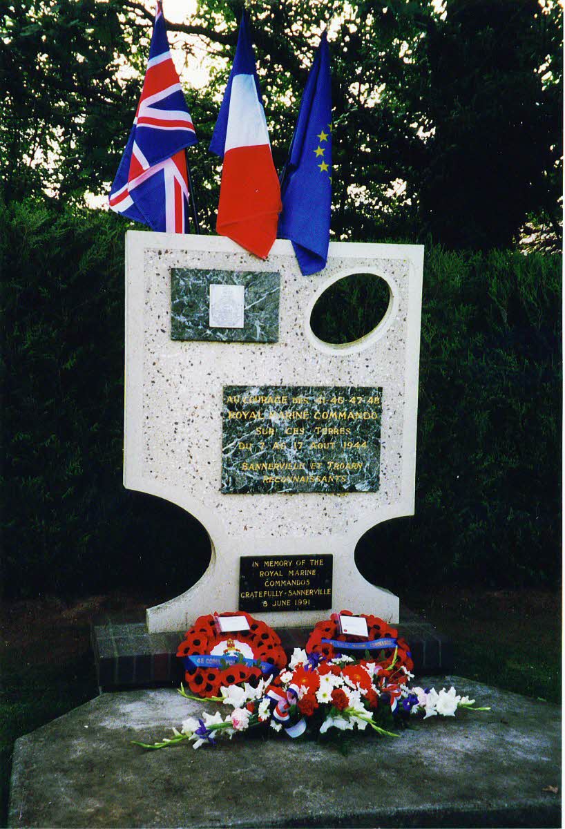 Located Sannerville, Normandy, France. Inscription: In memory of the Royal Marine Commandos, gratefully, Sannerville June 1991