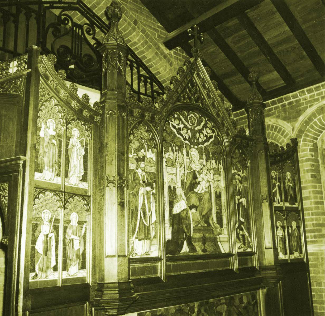 Cont'd:. .. on the other side panels represent Nativity, and on the other side panels figures of the types of Prophets and Recorders of the Nativity Also a second memorial was unveiled in memory of Brig. Gen. Lumsden. Inscription: Extract from G & L: On 25 July, 1920, at St. Andrews Church the RMA Memorial was unveiled to the memory of Officers, Non-Commissioned Officers, and Men of the RMA who fell in the Great War. The memorial itself is of carved oak and mosaic,