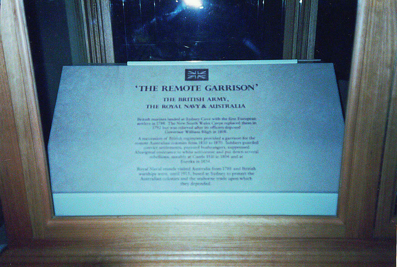 Memorial located Canberra Museum, Canberra, Capital Territory, Australia. Inscription: British Marines landed in Sydney Cove with the first European settlers in 1788. The New South Wales Corps replaced them in 1792.