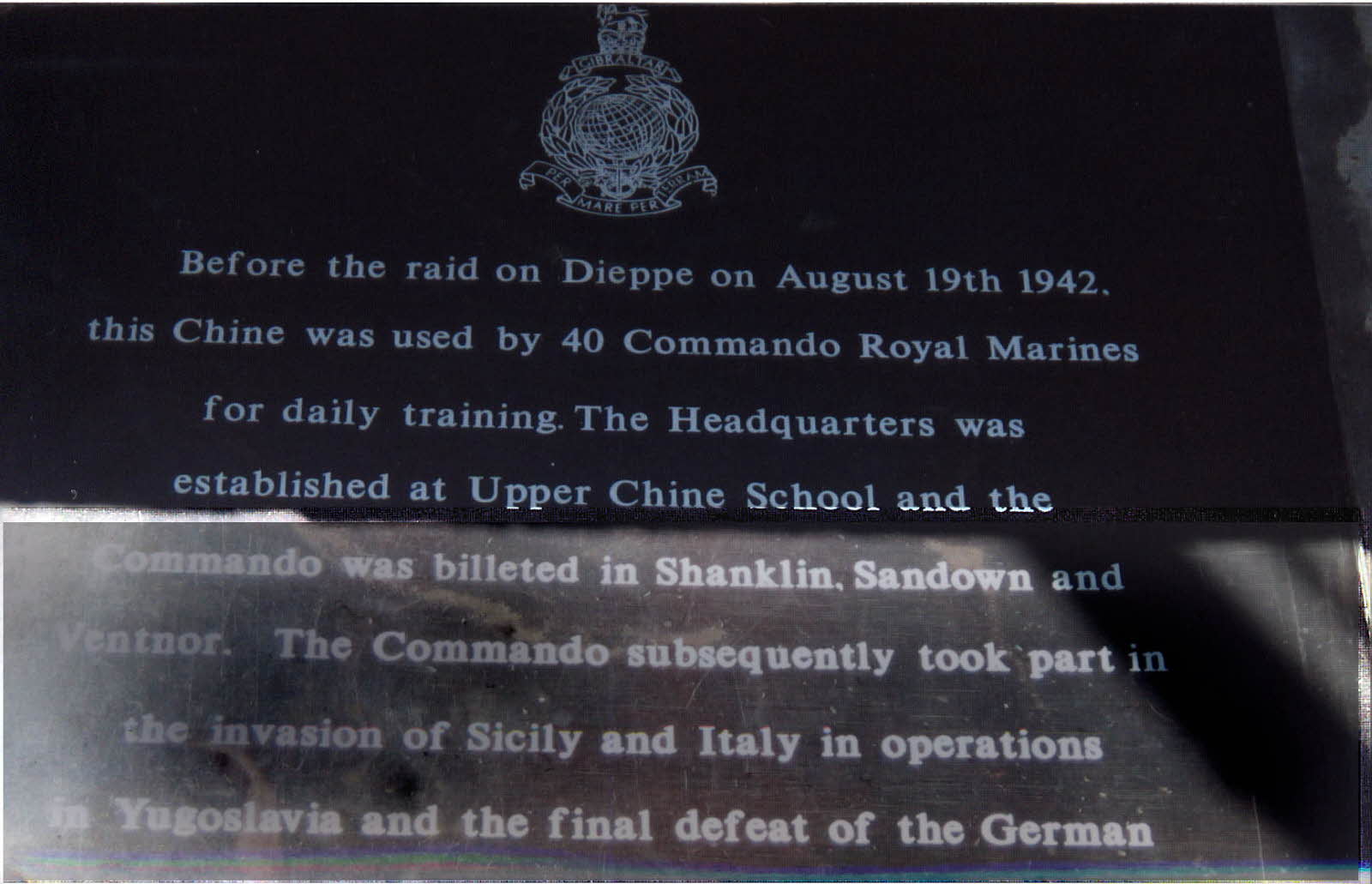 Memorial to 40 Commando RM 1942-1946 at the Chine, Isle of Wight