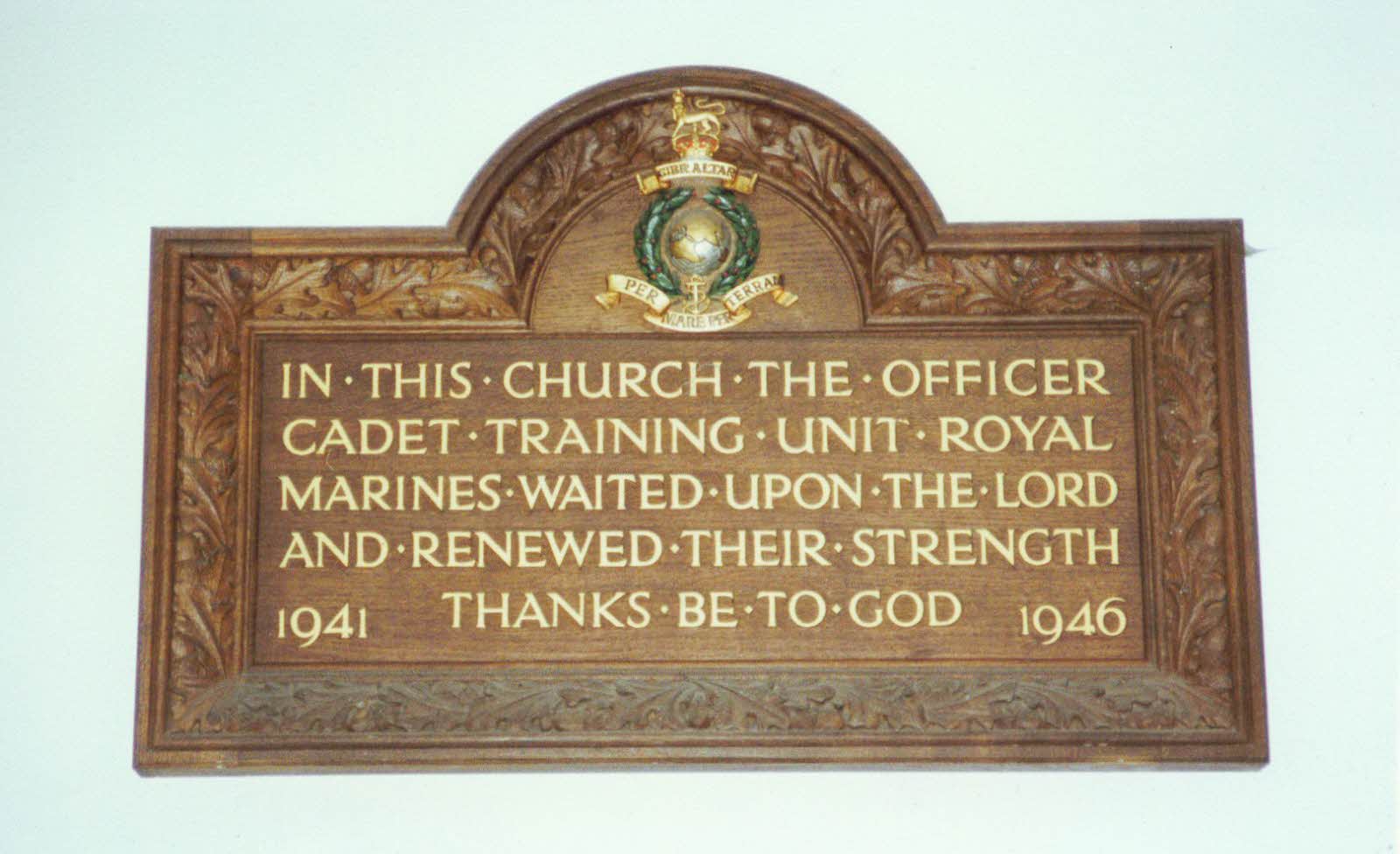 Memorial located Thurlestone, Devon. The 8th RM Battalion Headquarters moved to Thurlestone and set up the Royal Marine Officer Cadet Training Unit, January, 1941. The first course of cagets, 'HO7', completed its 12 weeks training by mid-April, 1941.