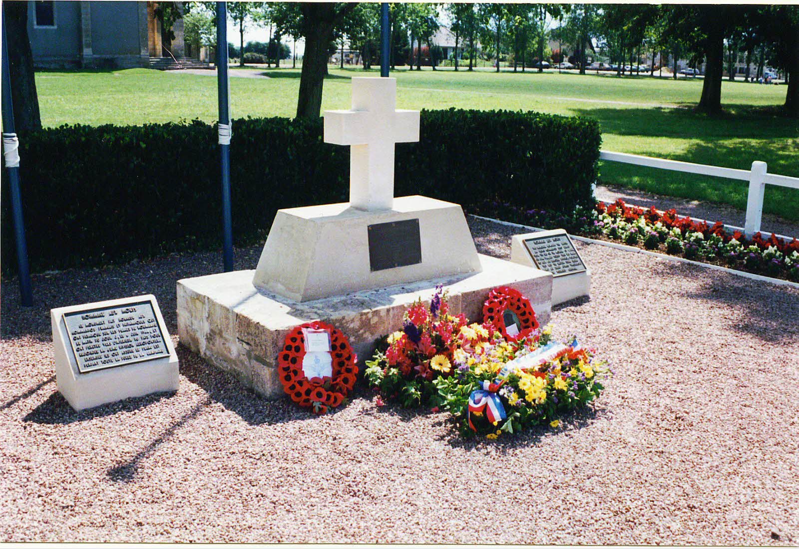 Consecrated during the 'Bastille Day' celebrations, July 14, 1944. The two plaques on the sides of the Memorial, one in English, the other in French, were erected in 1989. Inscription: Hommage aux morts - This Memorial honours the British and French commandos who landed from the sea on the morning of D-Day, 6 June, 1944, and fought their way inland to join 6th Airborne Division. Together they held the eastern flank secure against