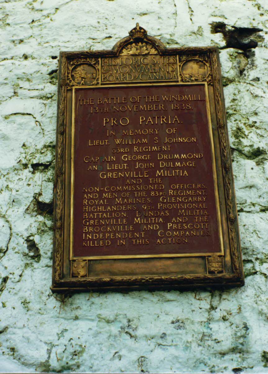 Battle of the Windmill, 12 November - 16 November, 1838, Windmill Point, east of Prescott, Ontario, Canada. Plaque mounted on wall of Windmill, adjacent to entrance door.