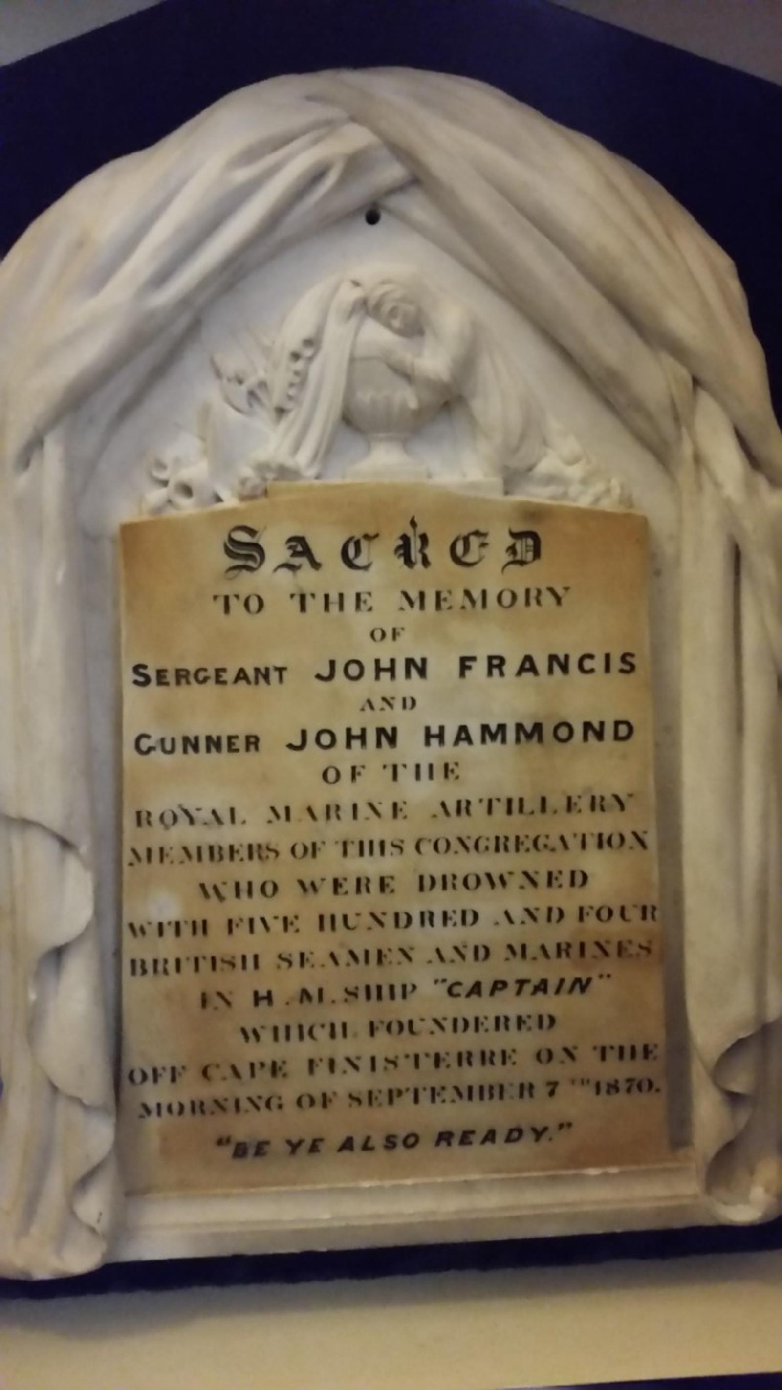 HMS Captain Memorial 1870 RMLI