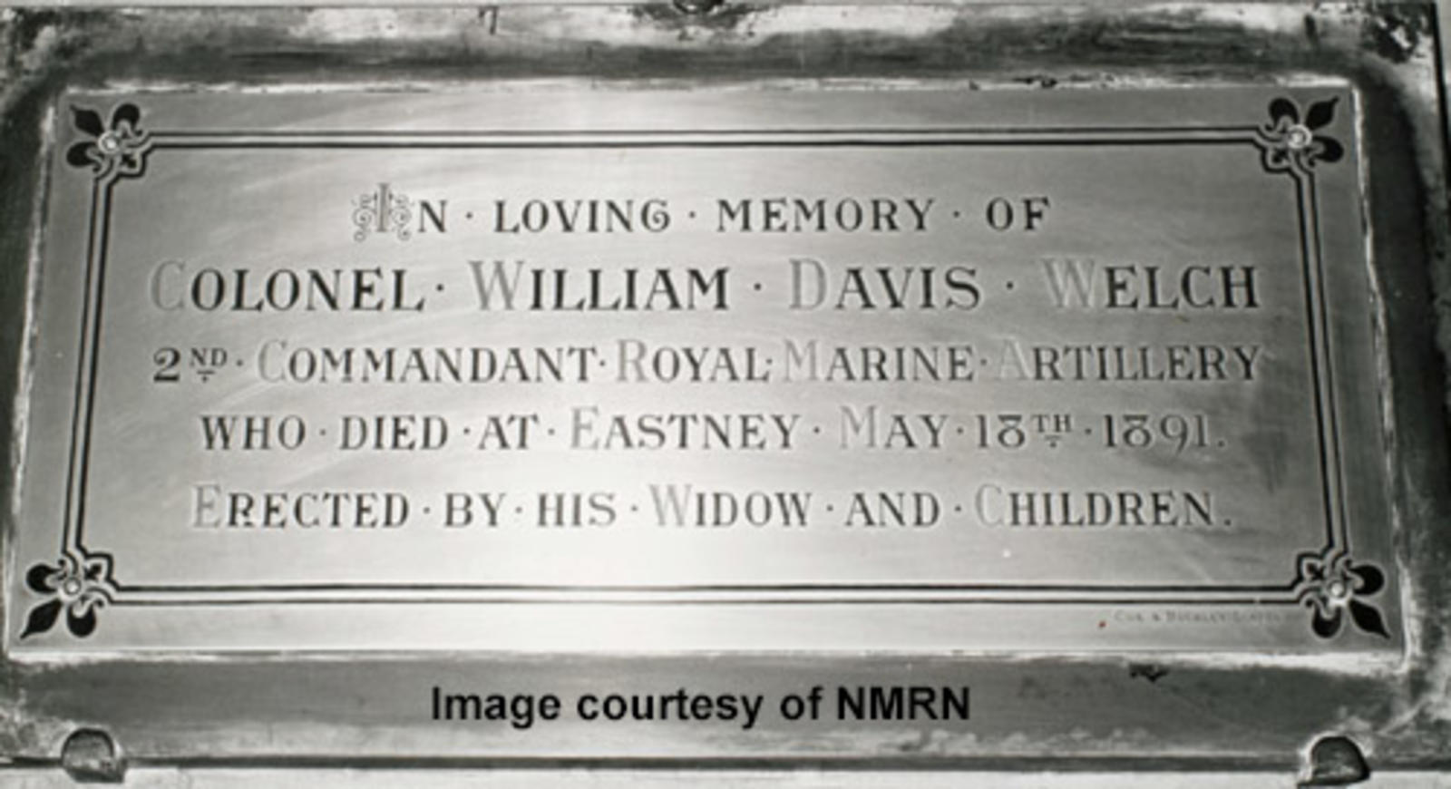 In memory of Colonel William Davis Welch 2nd Commandant Royal Marine Artillery who died at Eastney May 18th 1891. Erected by his widow and children.