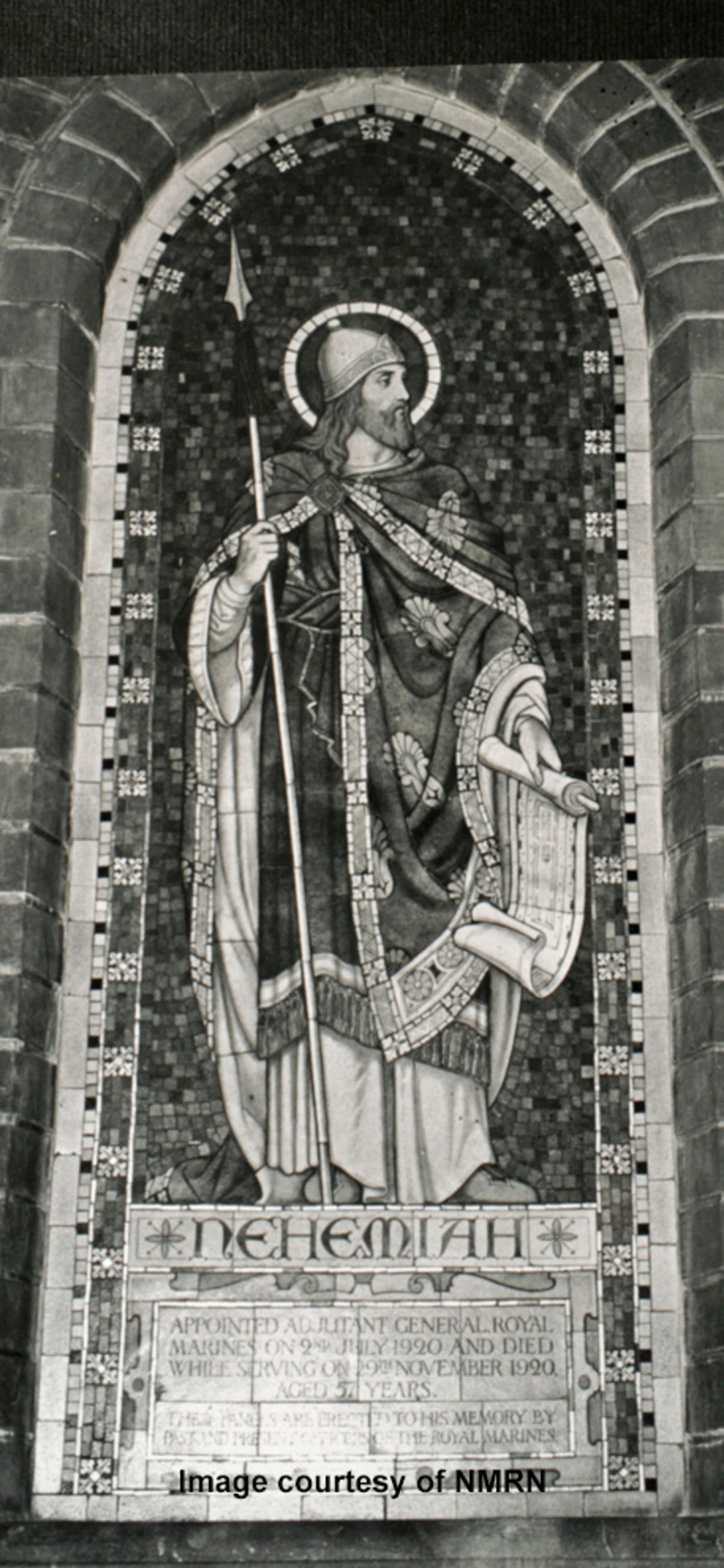 Appointed Adjutant General Royal Marines on 2nd July 1920 and died while serving on 29th November 1920, aged 57 years. These panes are erected to his memory by past and present officers of the Royal Marines.