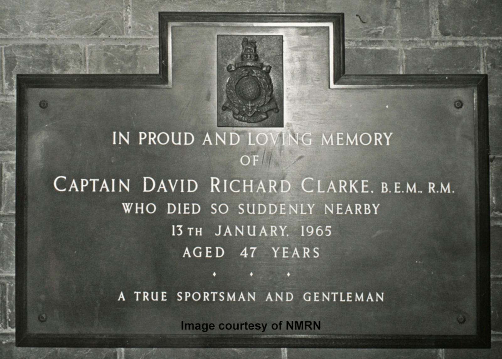 In proud and loving memory of Captain David Richard Clarke BEM RM who died so suddenly nearby, 13th January 1965, aged 47 years. A true sportsman and gentleman