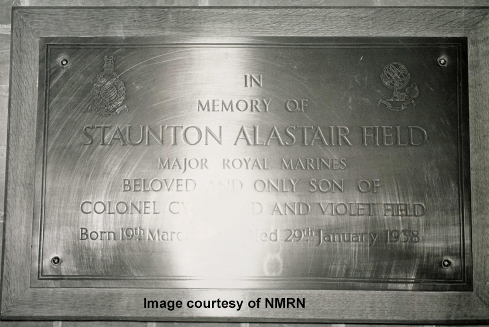 In memory of Staunton Alastair Field, Major Royal Marines, beloved and only son of Colonel Cyril ? and Violet Field. Born 19th March, died 29th January 1938