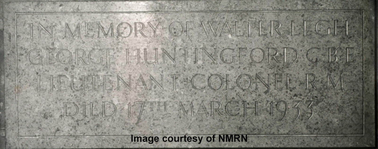 In memory of Walter Legh George Huntingford CBE, Lieutenant Colonel RM, died 17th March 1933
