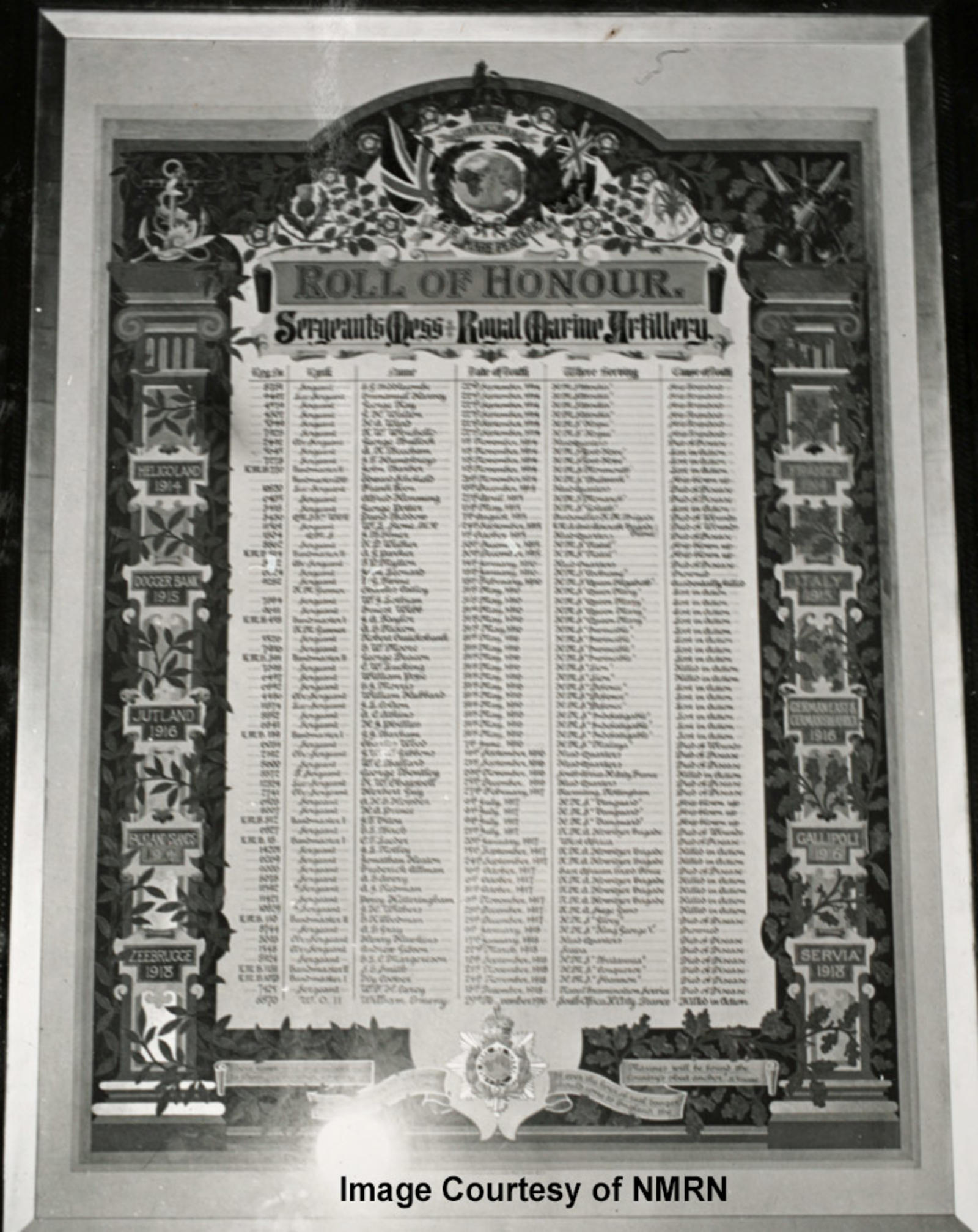 Roll of Honour. Sergeants Mess, Royal Marine Artillery