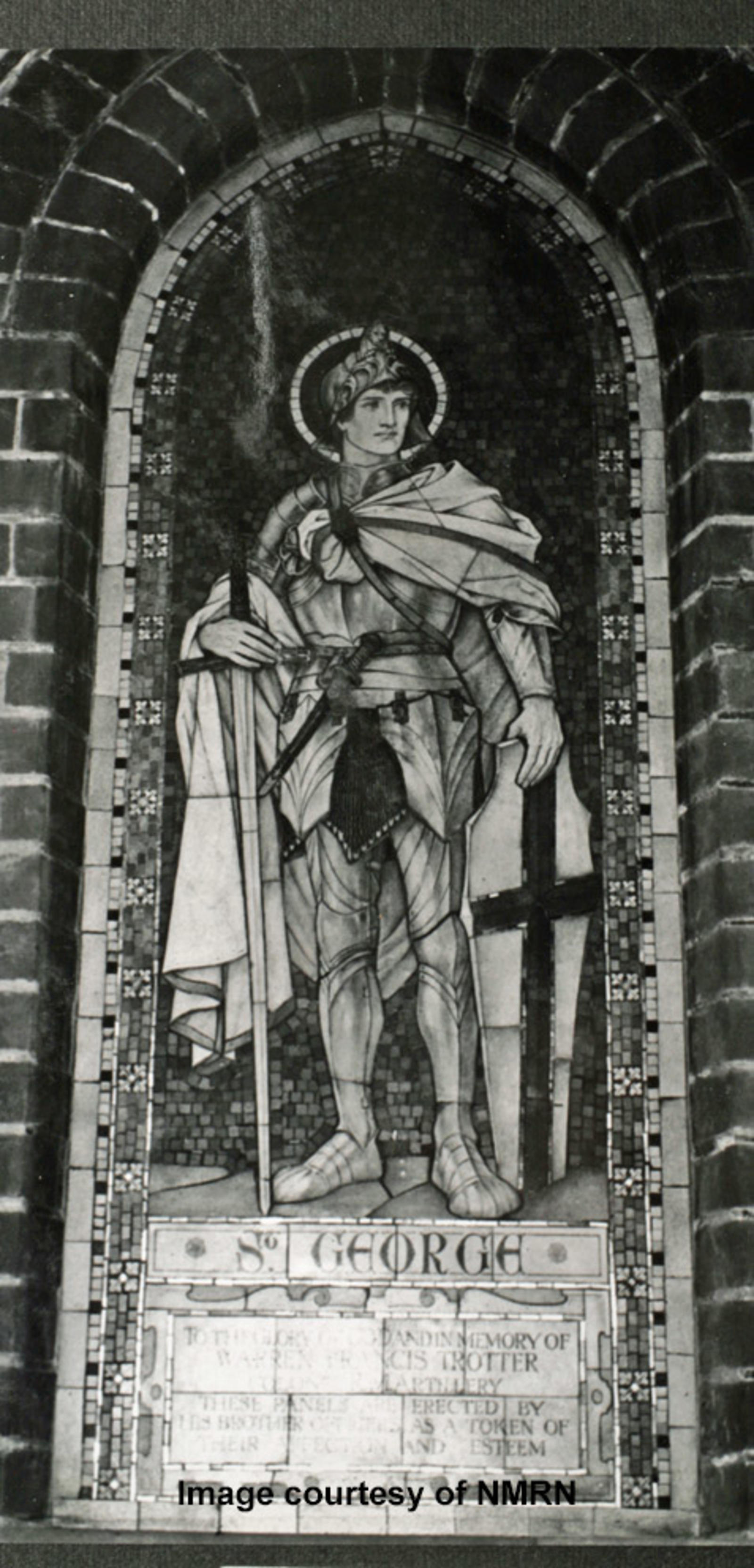 To the Glory of God and in memory of Warren Francis Trotter ???? RM Artillery. These panels are erected by his brother Officers as a token of their Affection and esteem.