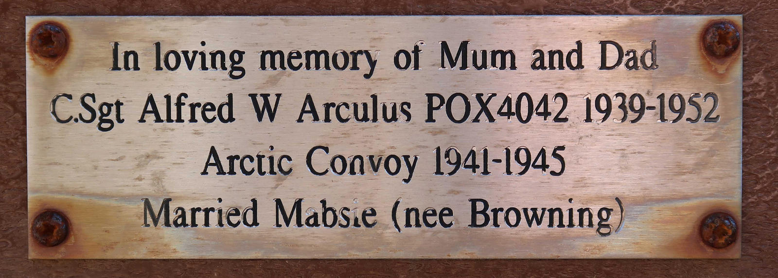 In loving memory of Mum and Dad, CSgt Alfred W Arculus POX4042 1939-1952, Arctic Convoy 1941-1945, Married Mabsie (nee Browning)