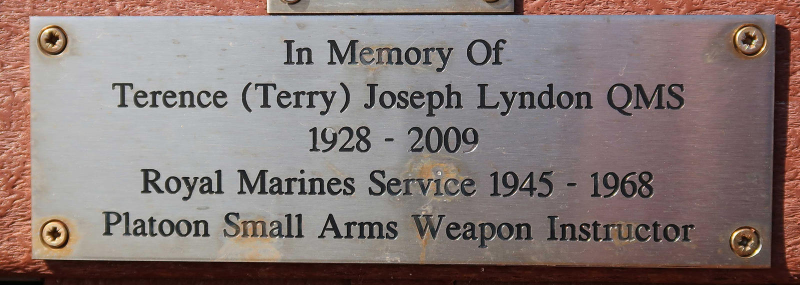 In Memory of Terence (Terry) Joseph Lyndon QMS, 1928-2009, Royal Marines Service 1945-1968, Platoon Small Arms Weapon Instructor