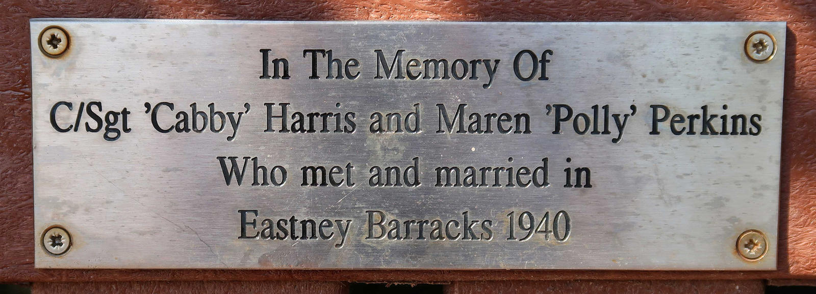 In the Memory of C/Sgt 'Cabby' Harris and Maren 'Polly' Perkins Who met and married in Eastney Barracks 1940