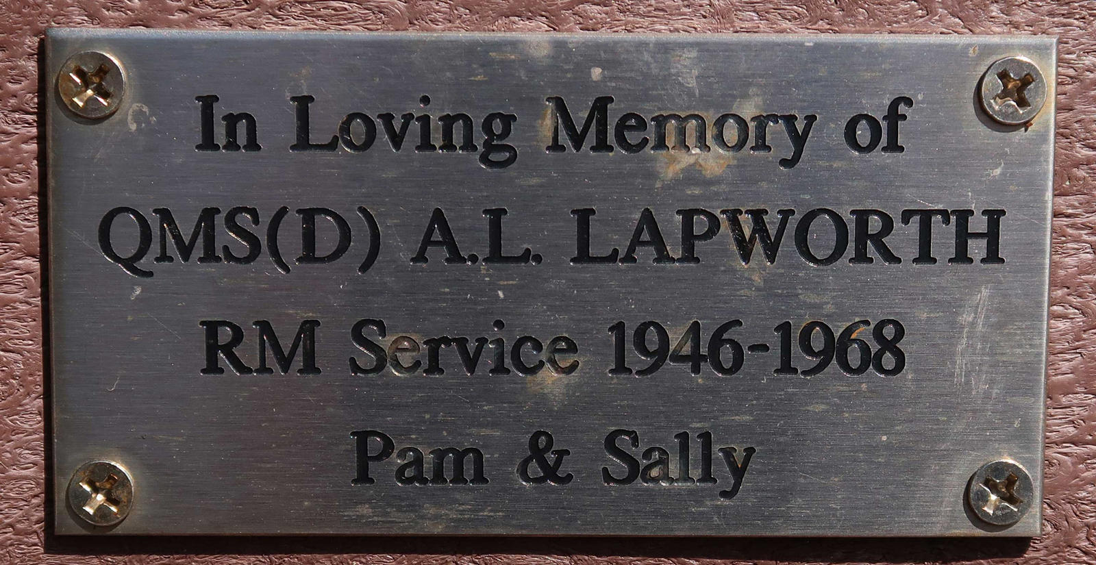 In Loving Memory of QMS(D) A L Lapworth, RM Service 1946-1968, Pam & Sally