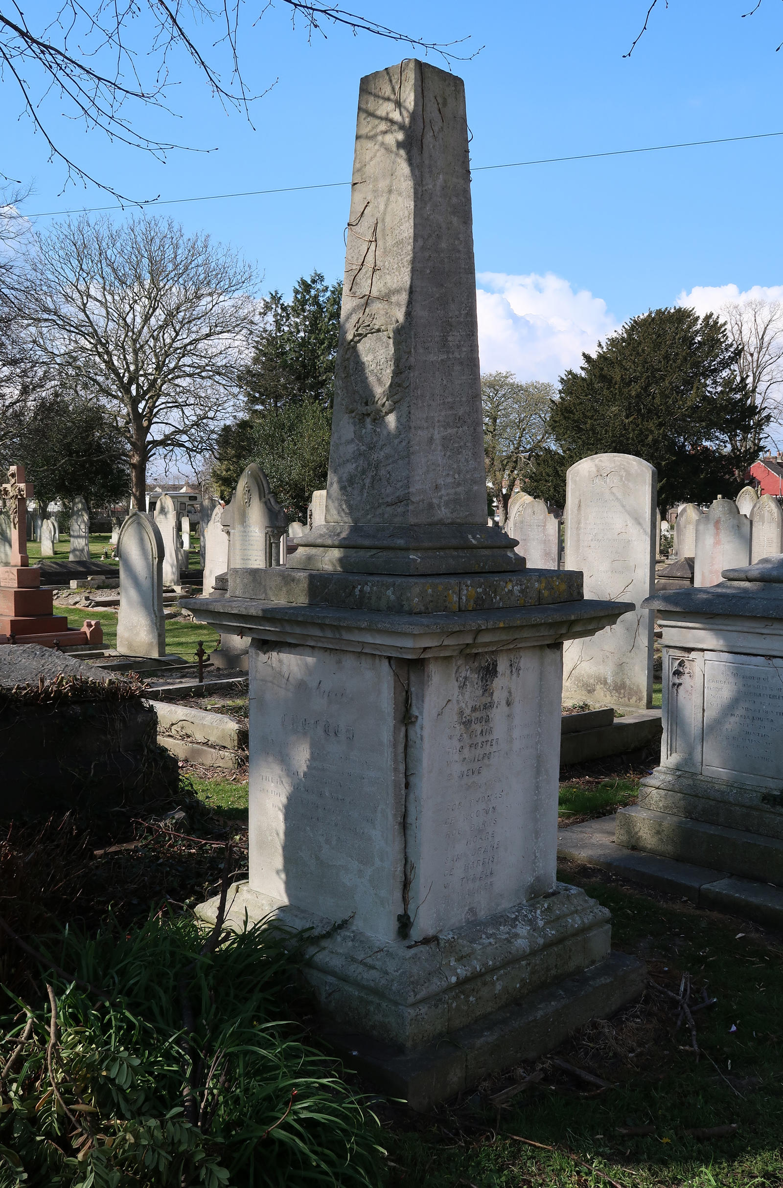 Erected by the Captain, officers and ships company of HMS Racer to the memory of their shipmates who died by accident and of yellow fever during the commission, 1858-1862. Includes: J A Museum, RMA