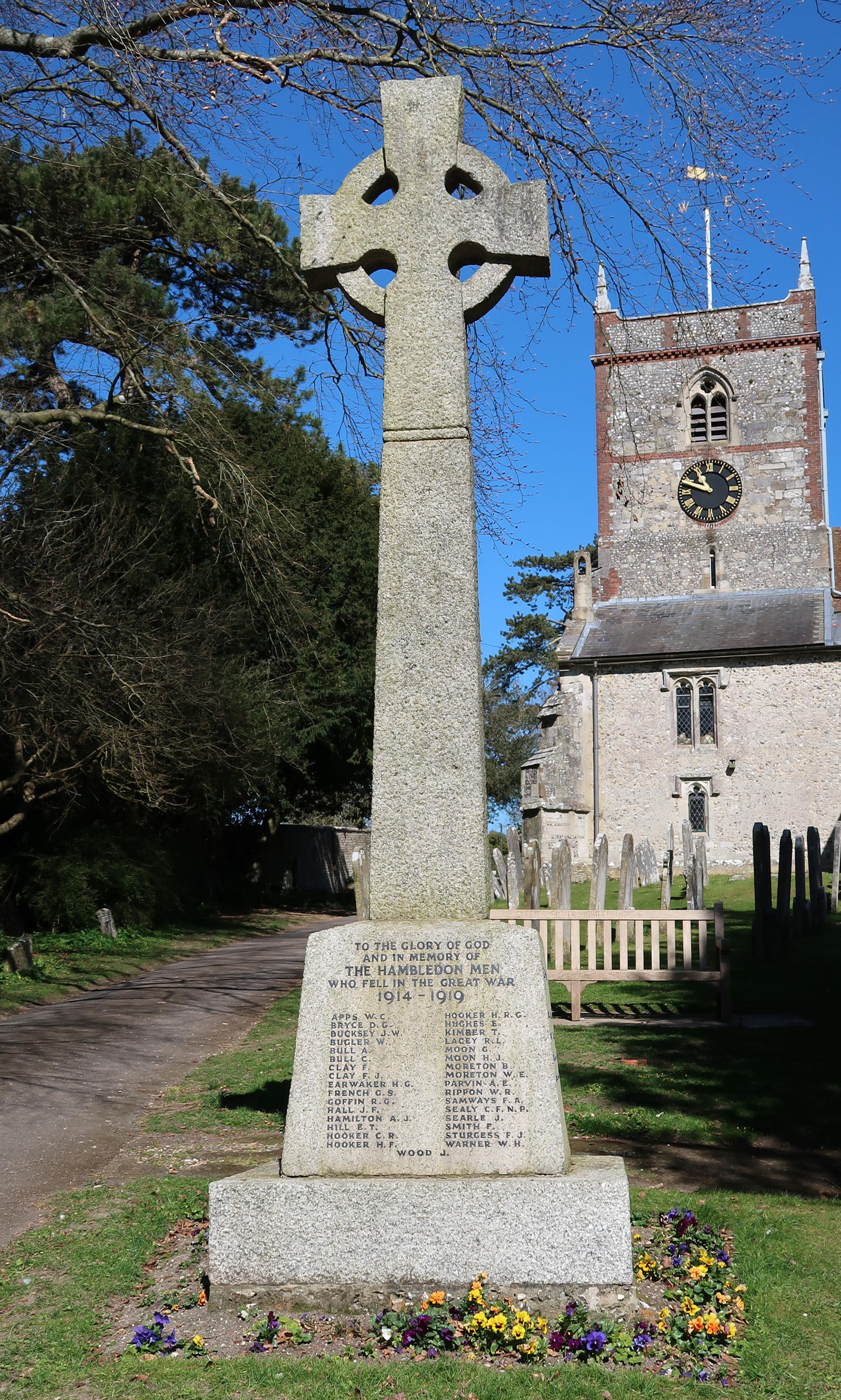 To the Glory of God and in memory of The Hambledon Men who fell in the Great War 1914-1919. Includes: W R Rippon