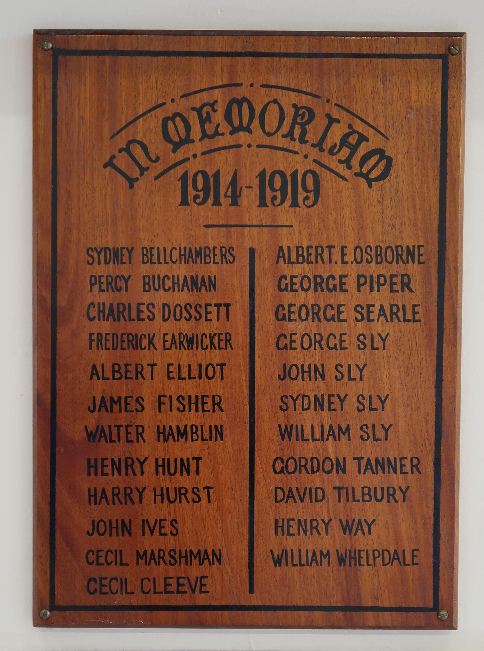In memoriam 1914-1919. Includes: David Tilbury. See separate plaque