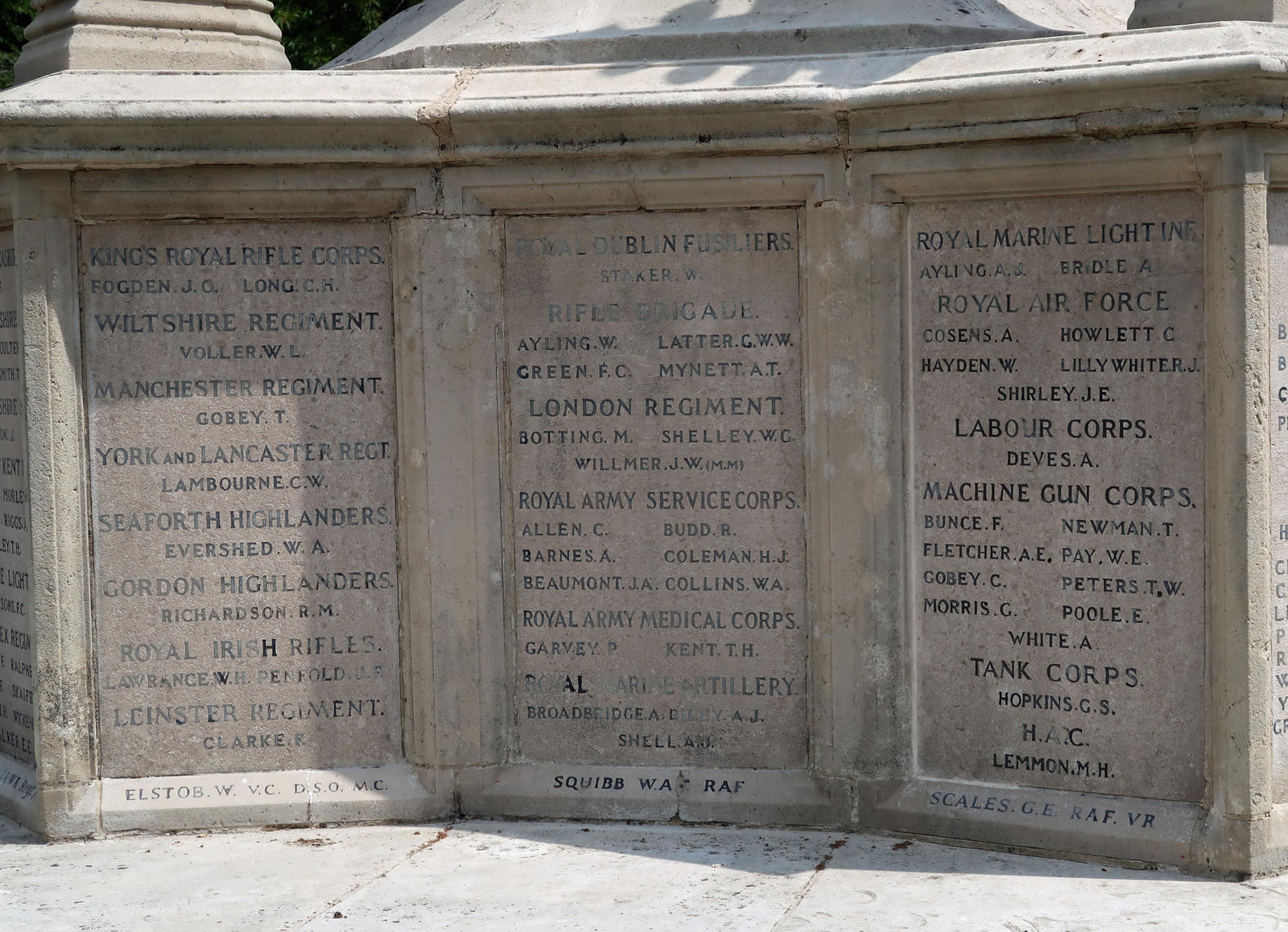 Includes: WW1: Broadbridge, A, RMA; Riley, A J, RMA; Shell, A J, RMA; Ayling A S, RMLI; Bridle, A, RMLI