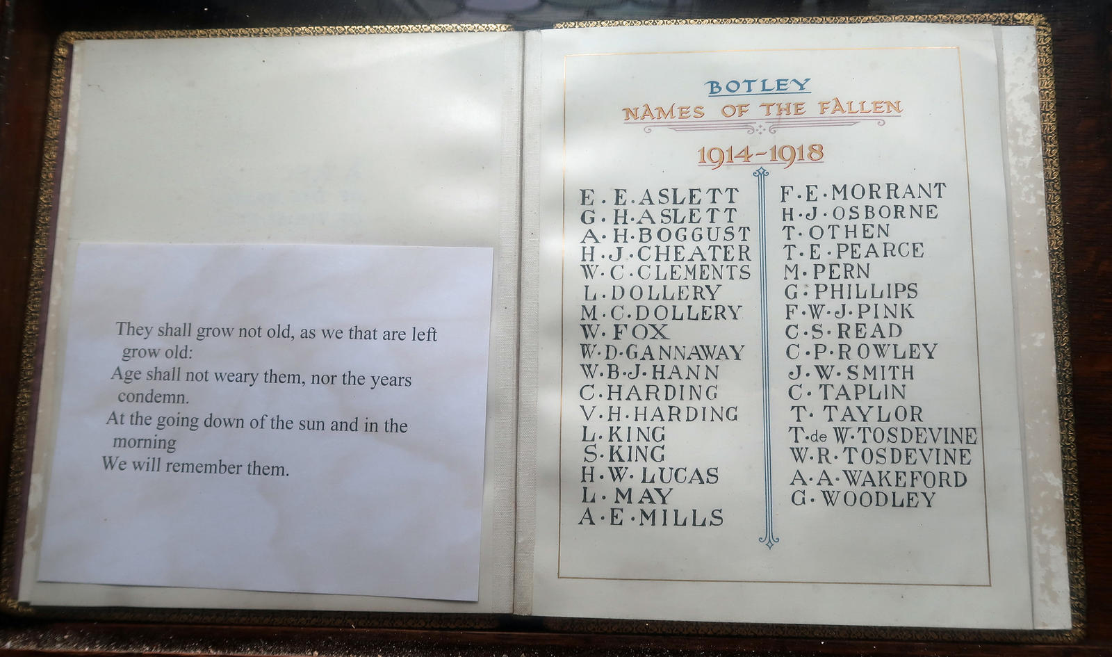 Botley, Names of the Fallen, 1914-1918. Includes: WW1, G H Aslett