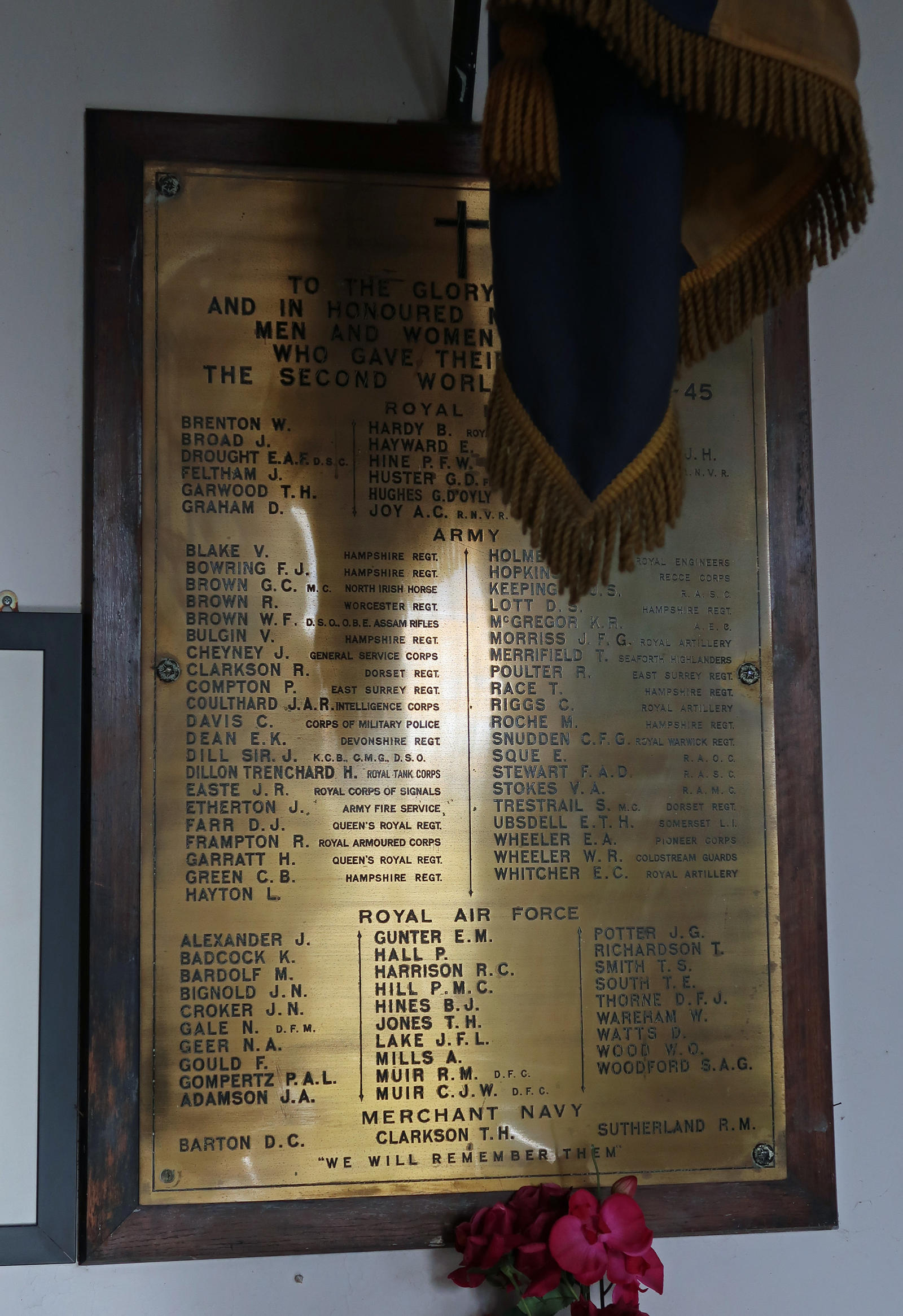 To the Glory of God and in honoured memory of the men and women of Milton who gave their lives in the second world war 1939-45. Includes: Hardy, B, Royal Marines