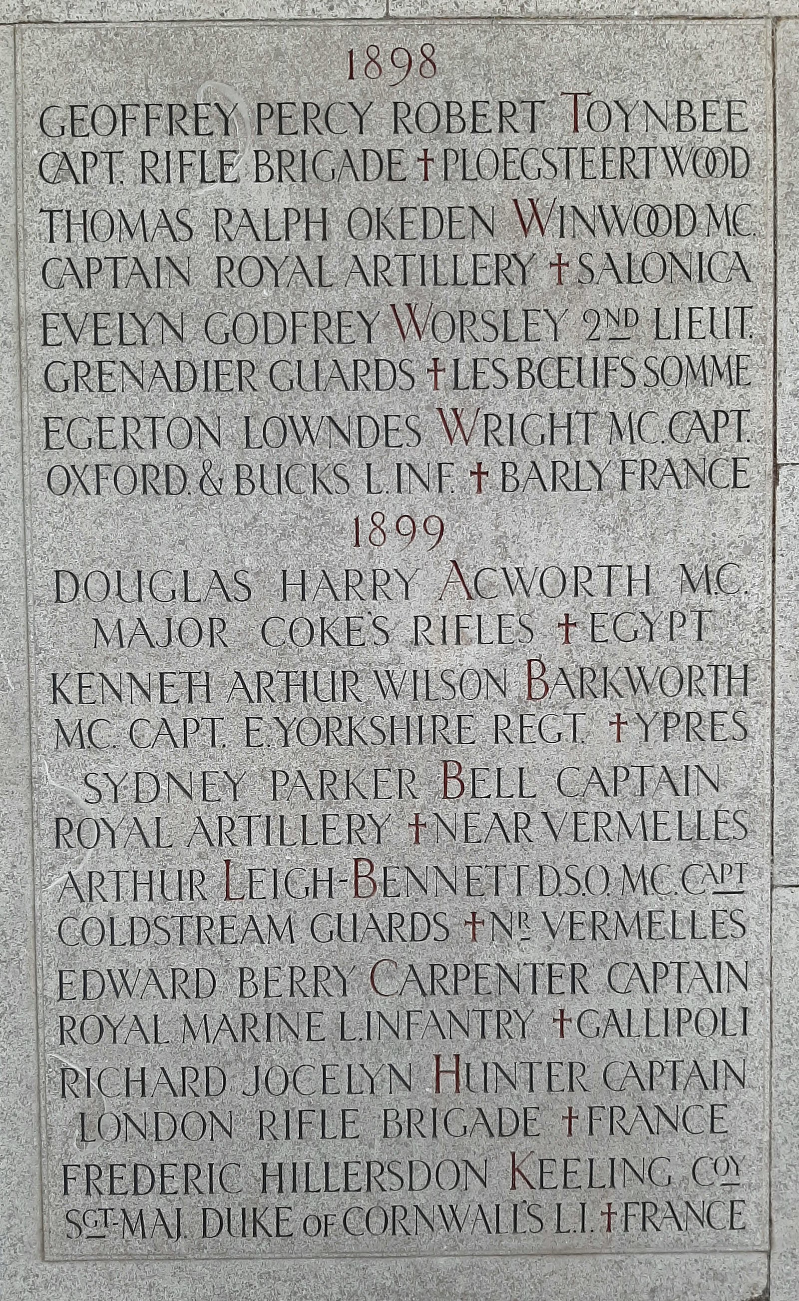 1899 is the year he started at the College. Capt Edward Berry Carpenter, RMLI, Plymouth Bn, RN Div. CWGC records " Was Head of his House in VI. Book, and in School Cricket and Football XI, Winchester. Captain of Cricket and President of University C.U. Oxford. Private Secretary to Sir Laurence Guillemard, Home Civil Service (Excise and Customs); called to the Bar, Inner Temple."