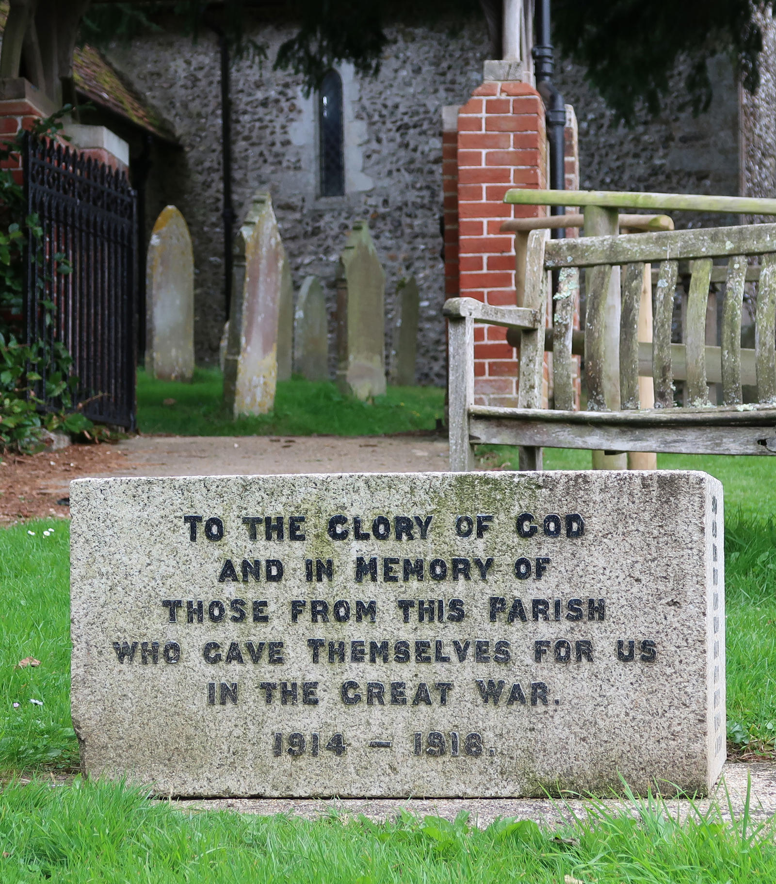To the Glory of God and in memory of those from this parish who gave themselves for us in the Great War. 1914-1918. Includes: H G Bond
