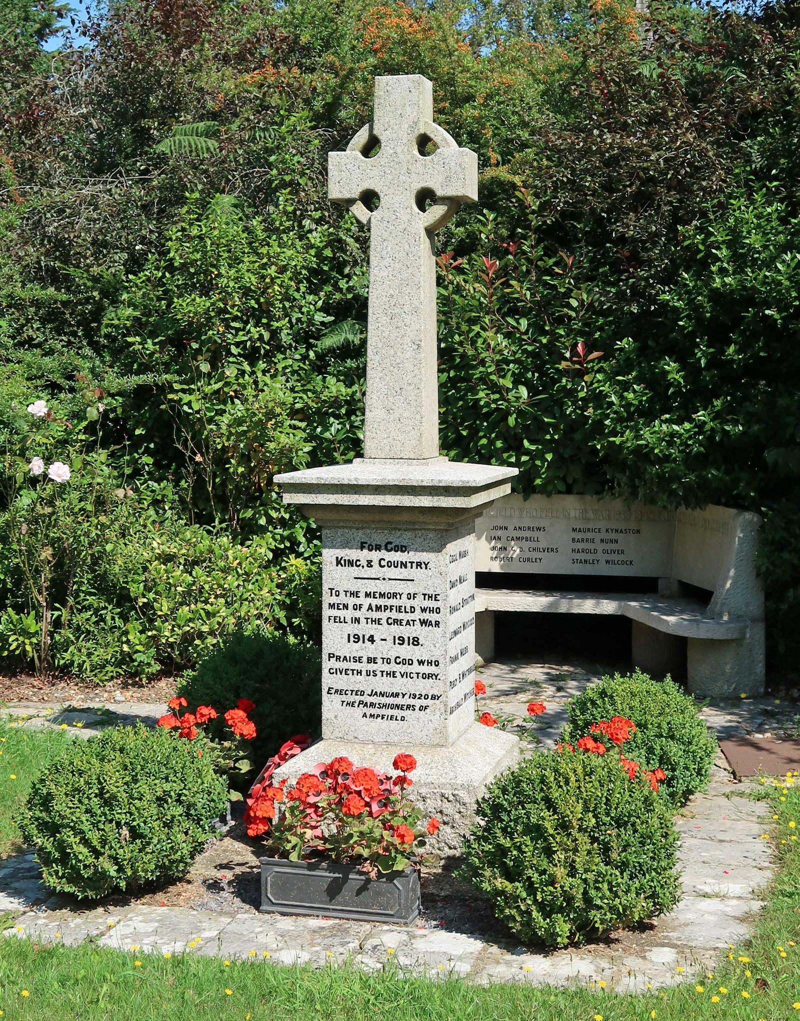 For God King and Country. To the memory of the men of Ampfield who fell in the Great War 1914-1918. Praise be to God who giveth us the victory. Erected January 1920 by the Parishioners of Ampfield. Includes: Leonard Waygood.