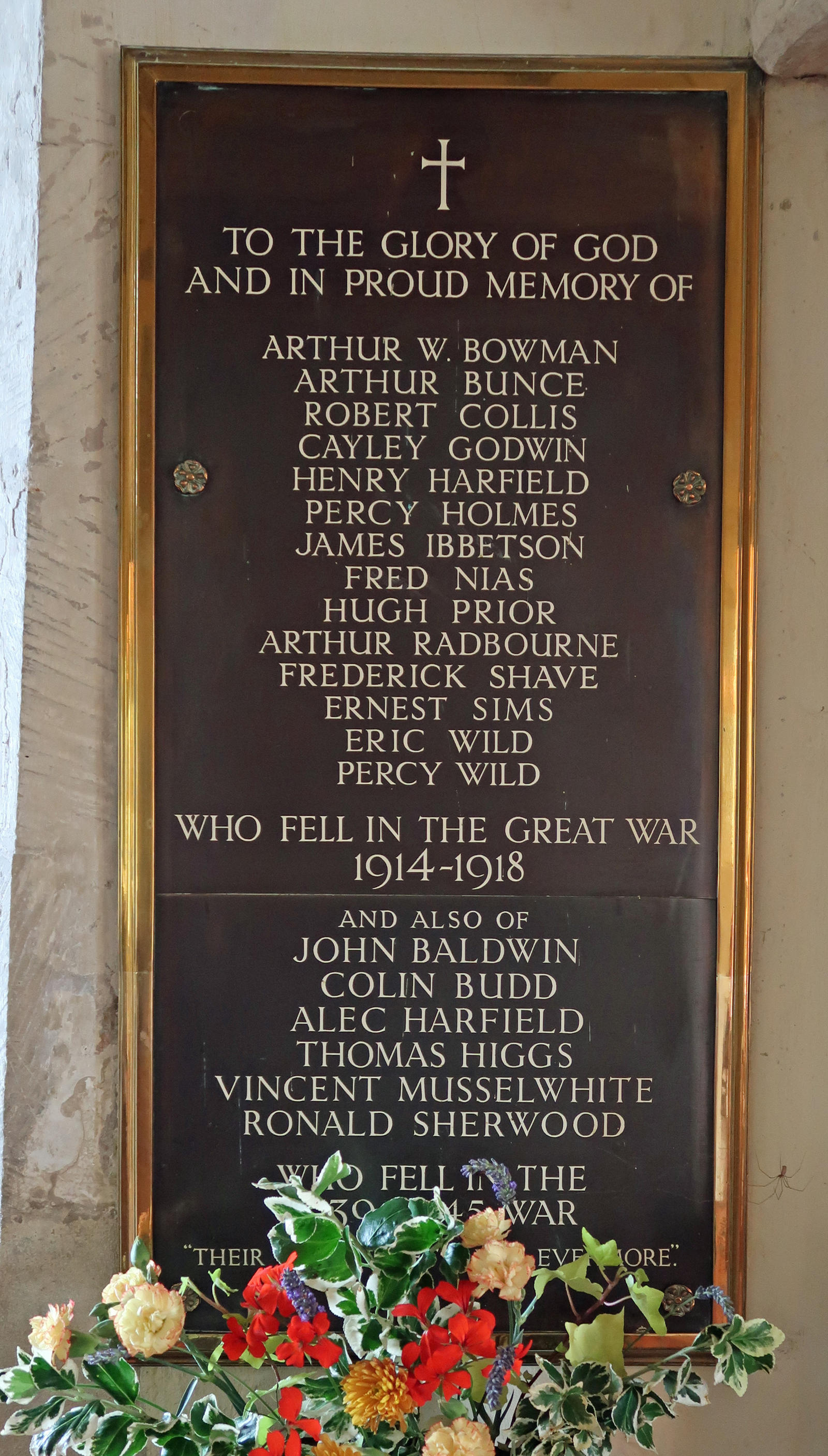 To the Glory of God and in proud memory of who fell in the Great War 1914-1918. Includes: Robert Collis.